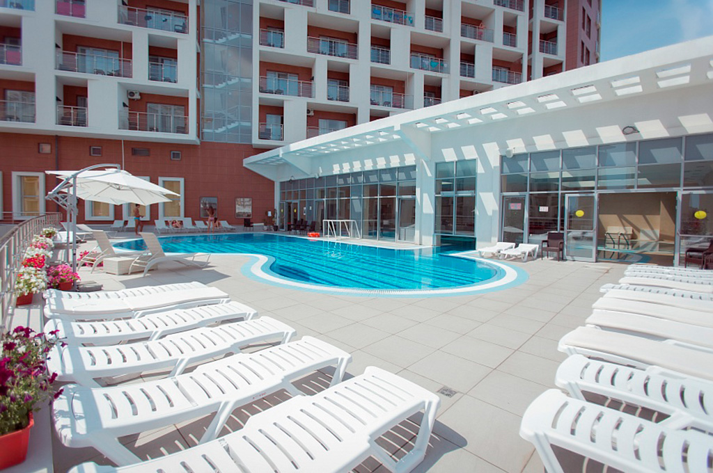 На территории «Bridge Resort» размещены бассейны как для взрослых, так и детей, открытые и закрытые. Они работают круглый год
